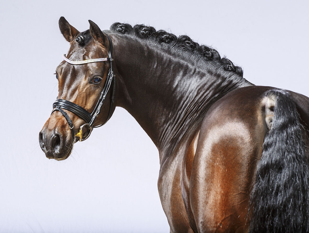 D-Day AT - ein sympathischer Nobelmann in dunkler Jacke mit weit überdurchschnittlichem Bewegungspotential und perfekten Interieurwerten. Trabmechanik mit der gewünschten Motorik aus der Hinterhand, immer locker und durch den Körper schwingend, feinste Galopparbeit in perfekter Bergauftendenz und überragender Schritt. Ein Hengst, der durch ein Höchstmaß an Harmonie bei absolut überzeugenden Charakterwerten und perfekter Rittigkeit besticht.