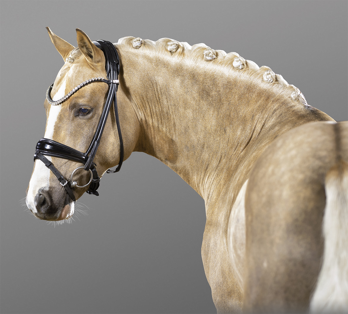 Dark Champagne AT, bewegungsstarker, strahlender Jüngling des Siegerhengstes Dating AT NRW. Er wurde Prämienhengst anlässlich der Körung 2021 des Westfälischen Pferdestammbuchs. Dark Champagne AT ist ein, im mittleren Rahmen stehender Modellathlet, der mit kraftvoller Bewegungsdynamik besticht. Im Trab und Galopp in natürlicher Selbsthaltung stets herrlich bergauf ausgerichtet, ist er zusätzlich mit einem überzeugendem Interieur ausgestattet, so zeigt er auch stets einen raumgreifenden mit viel Übertritt angelegten Schritt.