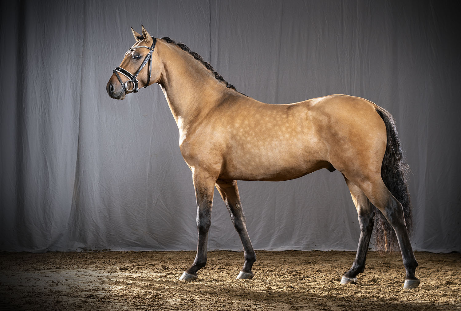 Die Mutter Dayna Ey hat mittlerweile aus der Anpaarung mit D-Day AT nun mit Diego da Silva AT den vierten gekörten Vollbruder auf die Zuchtbühne geschickt. Sie stammt ab vom großen FS Don´t Worry der die Reitponyzucht in der Vergangenheit entscheidend mitgeprägt hat. Im weiteren mütterlichen Pedigree ist der in Zucht und Sport hocherfolgreiche Golden Dancer verankert. Golden Dancer, selbst mehrfacher Europameister und Vater unzähliger gekörter Hengste und Spitzenstuten hat ebenfalls vieles dazu beigetragen, dass die Deutsche Reitponyzucht auf dem heutigen Stand ist. Die Halbschwester der vier gekörten Vollbrüder Championa L siegte 2016 in der Einlaufprüfung des Bundeschampionats für 5 j. Dressurponys mit der WN 8,6 und belegte im Finale Platz sieben.