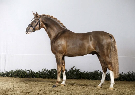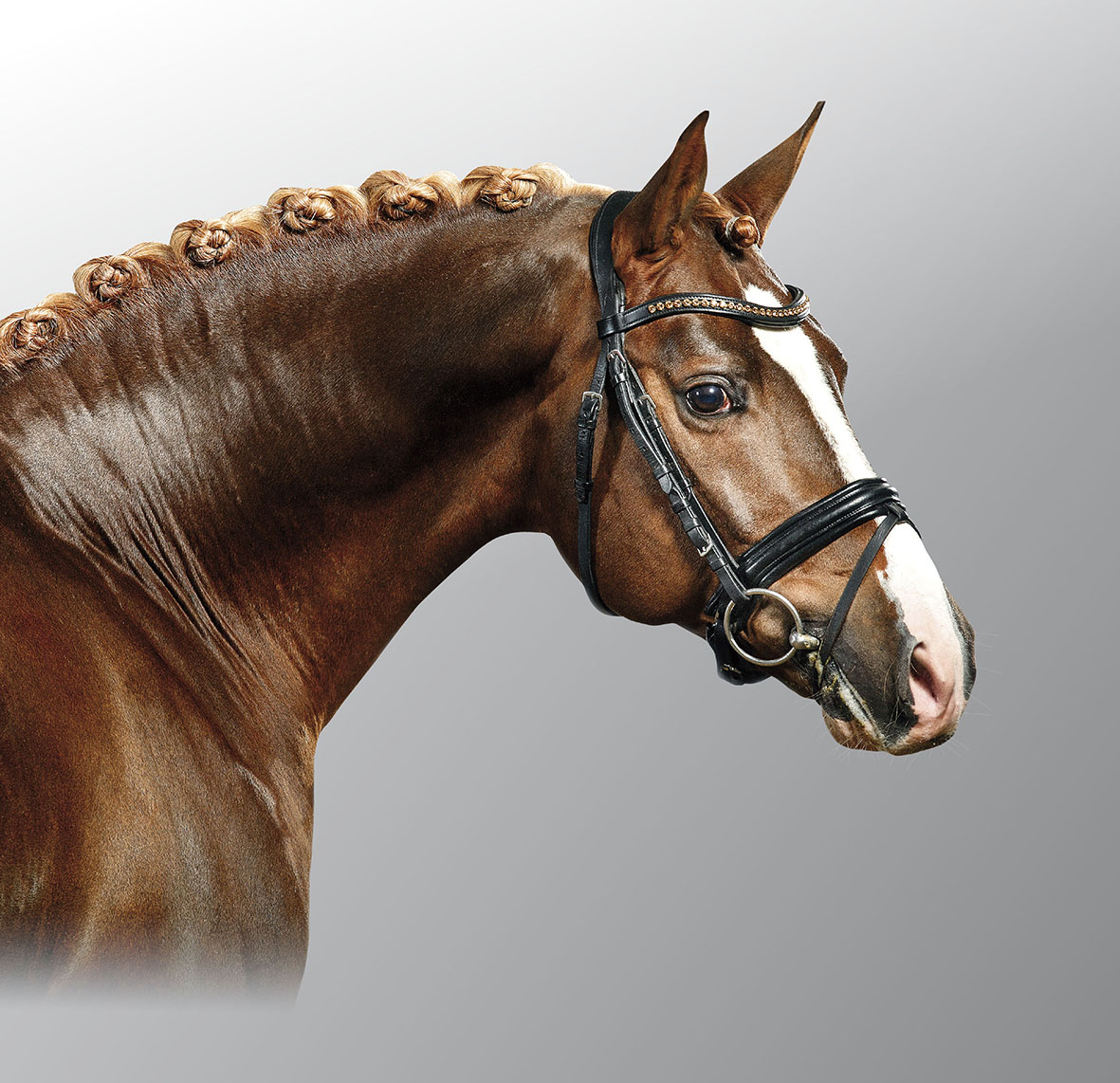 Typvoll und formschön ist er ein Juwel in allen Belangen. Er fasziniert mit gleichbleibend elastischen und bergauf vorgetragenen, stets unter den Schwerpunkt fußenden Bewegungsablauf. Ein genialer Bewegungskönig aus der Dynastie des Multichampions Dressman I. Der Schritt ist überragend und jederzeit unerschütterlich im Takt.