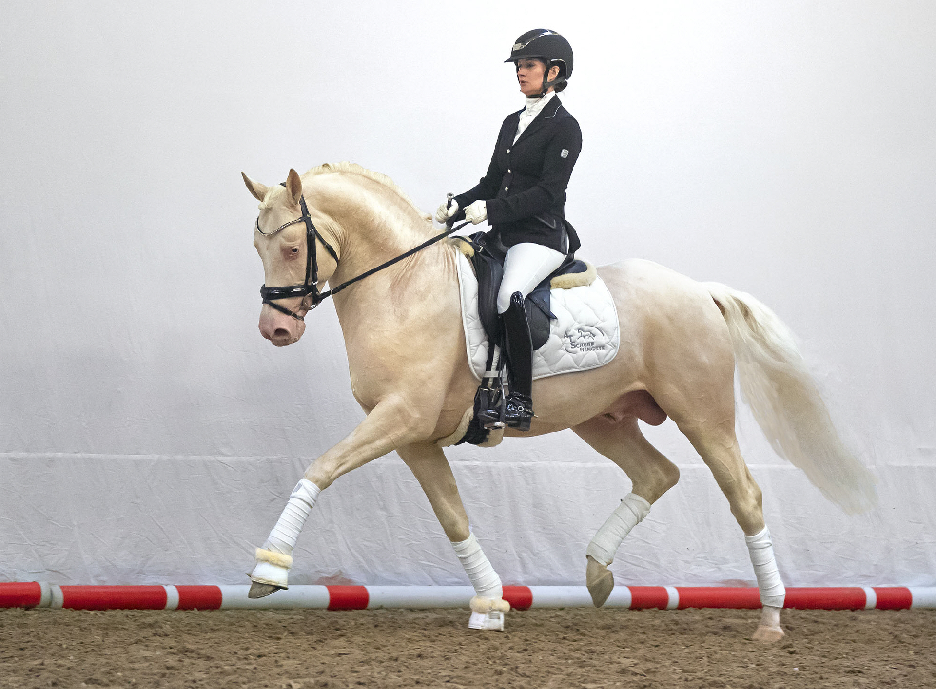 Dank seiner hohen Rittigkeit und Leistungsbereitschaft begeistert RIVERS DANCING AS seine Reiter immer wieder aufs Neue. Bereits als Fohlen fiel er durch besondere Qualität auf und wurde Landeschampion seines Zuchtverbandes. Mit seiner Größe von 1,55 m, einem außergewöhnlichen Pedigree und seiner begehrten Cremellofarbe, die ihn zum sicheren Farbvererber macht, stellt er eine spannende Bereicherung für die Zucht dar. Seine Nachkommen überzeugen sowohl durch ihre edle Typausprägung als auch durch eine sehr hohe Bewegungsqualität