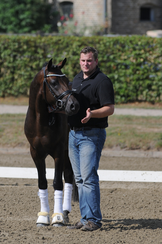 Geb. 1985, reiten (nein), aber ansonsten der Mann für Alles. Von Beruf Steinmetz, Pferdewirt und ebenfalls seit 2008 Besamungstechniker. Er gibt den Ton an beim Anreiten der Pferde, ein Meister der Lounge, er ist für die Vorbereitung eines Teils unserer Hengste für die Körung zuständig, gleiches gilt für die ersten Gehversuche unserer Youngster an der Longe und er ist auch gut zu Fuß. Die Hengste bei Körungen und Stuten bei Stutenschauen folgen Ihm auf Schritt und Tritt. In den letzten Jahren bekamen unter seiner Regie zahlreiche Hengste das positive Körurteil und auch im Stutenbereich war die Vorbereitung hocherfolgreich. Eliteschausiegerinnen, Elitestutenchampionats Siegerinnen, Siegerhengste und Springsieger in unterschiedlichen Zuchtverbänden genossen seine Ausbildung. Ansonsten ist er federführend in der Aufzucht unserer Jungpferde und hält Hof und Ställe in Schuss.